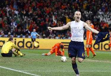 | Esultanza di Iniesta dopo il suo gol nella finale |