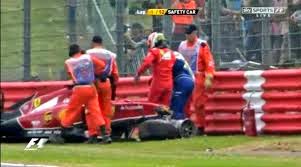 I colpi di scena continuano a Silverstone, nelle prime curve incidente di Raikkonen che, uscito fuori pista, cerca di rientrare il più velocemente possibile, ma tocca l'erba, sbanda e sbatte contro le barriere distruggendo la sua Ferrari e coinvolgendo anche Massa, determinando l’immediata sospensione della gara e un nuovo start (dopo 1 ora per ripristino guardrail) con safety car.
