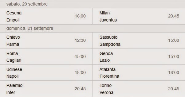 Questo match può già essere uno spartiacque per il cammino di entrambe le squadre data la posta in palio molto alta: tre punti fondamentali per la permanenza in Serie A. I romagnoli hanno cominciato alla grande vincendo contro il Parma ed hanno perso miseramente a Roma contro la Lazio, ma partono come favoriti dati i due passi falsi commessi dai toscani nelle prime due giornate di campionato. Segue alle 20.45 il big match di San Siro tra Milan e Juventus, un match che potrebbe riservare numerosi gol e qualche sopresa; inoltre, si tratta della prima volta in cui Allegri affronta da allenatore la squadra che gli ha regalato il suo primo ed unico scudetto. I rossoneri sono probabilmente in uno stato di tale euforia e forma, come non mai negli ultimo anno solare, e non vorranno sfigurare contro i rivali bianconeri e contro il loro ex tecnico. Inzaghi ha saputo trasferire ai suoi tutto il suo spirito battagliero e tutta la sua determinazione che metteva in campo, quando regalava al suo grande Milan scudetti e Champions League a suon di gol, mentre la Juventus è sempre la squadra da battere ed è sempre il solito rullo compressore. Contro Conte, contro l'infortunio di Pirlo, non si guarda in faccia a nessuno. Hanno ancora fame.